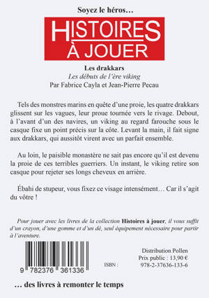 Tels des monstres marins en quête d'une proie, les quatre drakkars glissent sur les vagues, leur proue tournée vers le rivage. Debout, à l'avant d'un des navires, un viking au regard farouche sous le casque fixe un point précis sur la côte. Levant la main, il fait signe aux drakkars, qui aussitôt virent avec un parfait ensemble. Au loin, le paisible monastère ne sait pas encore qu'il est devenu la proie de ces terribles guerriers. Un instant, le viking retire son casque pour rejeter ses longs cheveux en arrière. Ébahi de stupeur, vous fixez ce visage intensément... Car il s'agit du vôtre !