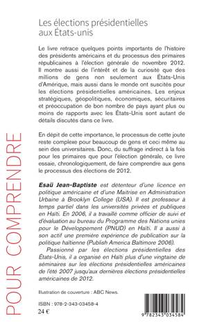 Cet ouvrage retrace quelques points importants de l'histoire des présidents américains et du processus des primaires républicaines à l'élection générale de novembre 2012. De manière chronologique, il essaie de faire comprendre aux gens ce processus complexe du suffrage indirect tant pour les primaires que pour l'élection générale. Il montre aussi l'intérêt et la curiosité qu'ont suscités ces élections américaines pour des millions de gens, aux Etats-Unis comme dans le monde entier.