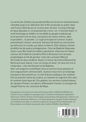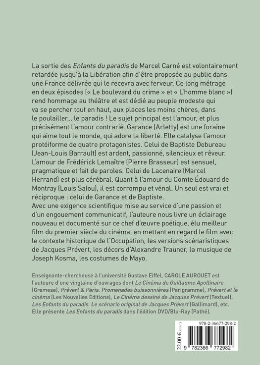 La sortie des « Enfants du paradis » est volontairement retardée jusqu'à la Libération afin d'être proposée au public dans une France délivrée qui le recevra avec ferveur. Ce long métrage en deux épisodes (« Le boulevard du crime » et « L'homme blanc ») donne à voir les coulisses du théâtre et est dédié au peuple modeste qui va se percher tout en haut, aux places les moins chères, dans le poulailler… le paradis ! Le sujet principal est l'amour contrarié : celui de Garance (Arletty), une foraine qui aime tout le monde, éprise de liberté, qui clame « je suis comme je suis » et qui affirme « c'est si simple l'amour ». Elle catalyse l'amour protéiforme de quatre protagonistes. Celui de Baptiste Debureau (Jean-Louis Barrault) – célèbre mime qui jouait au théâtre des Funambules – est ardent, passionné, silencieux et rêveur. L'amour de Frédéric Lemaître (Pierre Brasseur) – figure parlante opposée au mime et grand acteur de l'époque – est sensuel, pragmatique et fait de paroles. Celui de Lacenaire (Marcel Herrand) – le poète-assassin – est plus cérébral. Quant à l'amour du Comte Édouard de Montray (Louis Salou), il est corrompu et vénal. Un seul est vrai et réciproque : celui de Garance et de Baptiste…