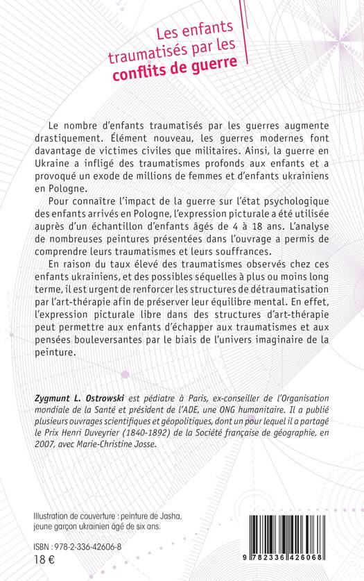 Le nombre d’enfants traumatisés par les guerres augmente drastiquement. Élément nouveau, les guerres modernes font davantage de victimes civiles que militaires. Ainsi, la guerre en Ukraine a infligé des traumatismes profonds aux enfants et a provoqué un exode de millions de femmes et d’enfants ukrainiens en Pologne. Pour connaître l’impact de la guerre sur l’état psychologique des enfants arrivés en Pologne, l’expression picturale a été utilisée auprès d’un échantillon d’enfants âgés de 4 à 18 ans. L’analyse de nombreuses peintures présentées dans l’ouvrage a permis de comprendre leurs traumatismes et leurs souffrances. En raison du taux élevé des traumatismes observés chez ces enfants ukrainiens, et des possibles séquelles à plus ou moins long terme, il est urgent de renforcer les structures de détraumatisation par l’art-thérapie afin de préserver leur équilibre mental. En effet, l’expression picturale libre dans des structures d’art-thérapie peut permettre aux enfants d’échapper aux traumatismes et aux pensées bouleversantes par le biais de l’univers imaginaire de la peinture.