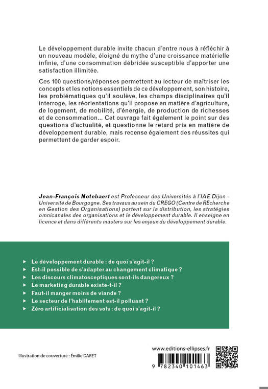 Ces 100 questions/réponses permettent au lecteur de maîtriser les concepts et les notionsessentiels de ce développement, son histoire, les problématiques qu’il soulève, les champs disciplinaires qu’il interroge, les réorientations qu’il propose en matière d’agriculture, de logement, de mobilité, d’énergie, de production de richesses et de consommation… Cet ouvrage fait également le point sur des questions d’actualité, et questionne le retard pris en matière de développement durable, mais recense également des réussites qui permettent de garder espoir.