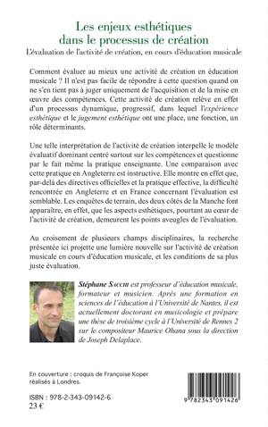 Comment évaluer au mieux une activité de création en éducation musicale ? Cette activité de création relève d'un processus dynamique, progressif, dans lequel l'expérience esthétique et le jugement esthétique ont une place, une fonction, un rôle déterminants. Au croisement de plusieurs champs disciplinaires, la recherche présentée ici projette une lumière nouvelle sur l'activité de création musicale en cours d'éducation musicale, et les conditions de sa plus juste évaluation.