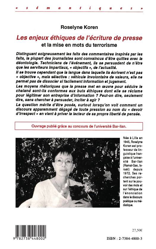 Distinguant soigneusement les faits des commentaires Inspirés par les faits, la plupart des Journalistes sont convaincus d'être quittes avec la déontologie. Techniciens de l'événement, Ils se persuadent de n'être que les serviteurs Impartiaux, « objectifs », de /'actualité. Il se trouve cependant que la langue dans laquelle Ils écrivent n'est pas « objective », mals sélective : véhicule Involontaire de valeurs, elle ne permet pas de dissocier si facilement Information et Jugement. Les moyens rhétoriques que la presse met en œuvre pour séduire le chaland sont-lis conformes aux buts éthiques dont elle se réclame pour légitimer son entreprise d'information ? Peut-on dire, seulement dire, sans chercher à persuader, Inciter à agir? La question mérite d'être posée, surtout lorsqu'on volt comment un discours apparemment dégagé de toute pression au nom du « devoir d'irrespect» en vient à priver le lecteur de sa propre liberté de pensée.