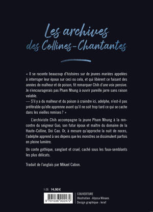 L'archiviste Chih accompagne la jeune Pham Nhung à la rencontre du seigneur Guo, son futur époux et maître du domaine de la Haute-Colline, Doi Cao. Or, à mesure qu'approche la nuit de noces, l'adelphe apprend à ses dépens que les monstres se dissimulent parfois en pleine lumière.