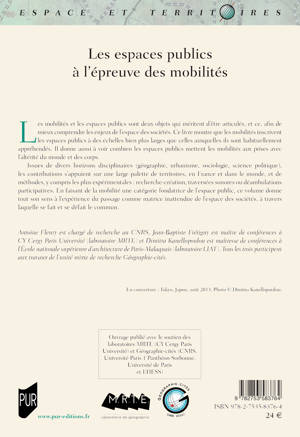 Les mobilités et les espaces publics sont deux objets qui méritent d'être articulés, et ce, afin de mieux comprendre les enjeux de l'espace des sociétés. Ce livre montre que les mobilités inscrivent les espaces publics à des échelles bien plus larges que celles auxquelles ils sont habituellement appréhendés. Il donne aussi à voir combien les espaces publics mettent les mobilités aux prises avec l'altérité du monde et des corps.