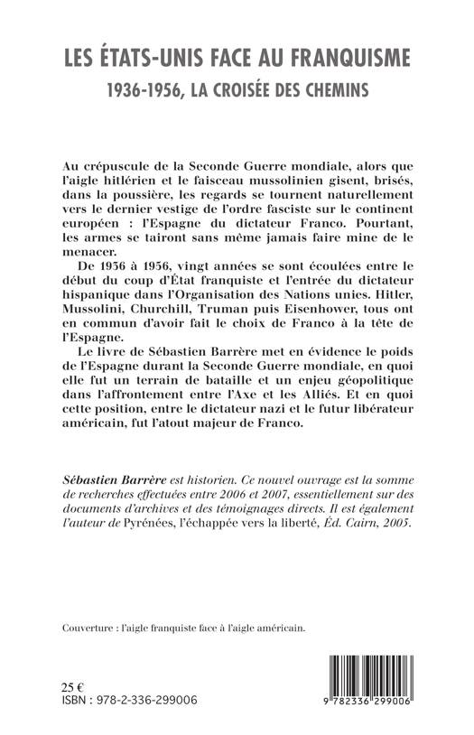 La Seconde Guerre mondiale prend fin sans qu'aucune menace ne soit proférée à l'encontre de l'Espagne, dernier pays fasciste en Europe. Vingt années séparent le début du coup d'État franquiste de l'entrée du dictateur hispanique à l'ONU. Hitler, Mussolini, Churchill, Truman puis Eisenhower ont tous fait le choix de Franco à la tête de l'Espagne. Ce livre souligne le poids de ce pays durant le conflit et montre en quoi sa position entre Hitler et le futur libérateur américain fut l'atout majeur de Franco.