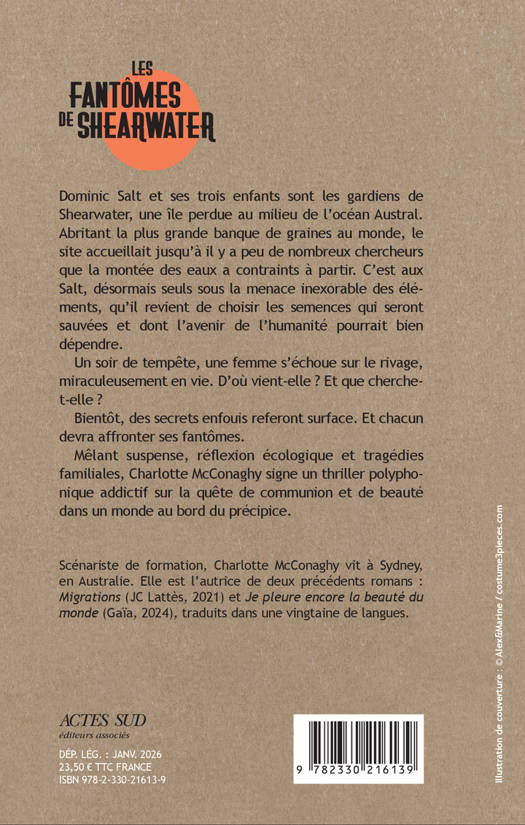 Dominic Salt et ses trois enfants sont les gardiens de Shearwater, une île perdue au milieu de l'océan Austral. Abritant la plus grande banque de graines au monde, le site accueillait jusqu'à il y a peu de nombreux chercheurs que la montée des eaux a contraints à partir. C'est aux Salt, désormais seuls sous la menace inexorable des élé-ments, qu'il revient de choisir les semences qui seront sauvées et dont l'avenir de l'humanité pourrait bien dépendre. Un soir de tempête, une femme s'échoue sur le rivage, miraculeusement en vie. D'où vient-elle ? Et que cherche-t-elle ? Bientôt, des secrets enfouis referont surface. Et chacun devra affronter ses fantômes. Mêlant suspense, réflexion écologique et tragédies familiales, Charlotte McConaghy signe un thriller polyphonique addictif sur la quête de communion et de beauté dans un monde au bord du précipice.