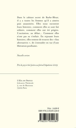 Dans le cabinet secret de Barbe-Bleue, il y a toutes les femmes qu’il a aimées puis assassinées. Elles nous racontent leurs histoires ; comment elles se sont fait séduire, comment elles ont été piégées. L’excitation, au début… Comment elles n’ont pas su s’enfuir. En rejouant leurs histoires, elles tentent de trouver des « fins alternatives », de s’entraider en vue d’une libération posthume.