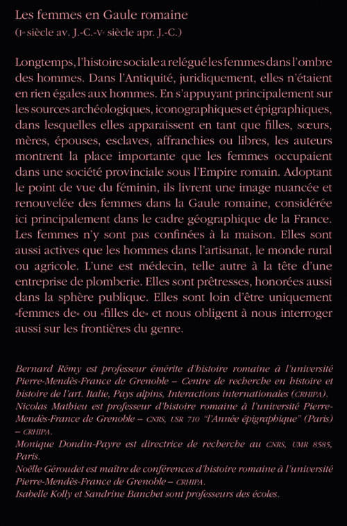A la découverte de la femme en Gaule romaine. Son statut familial et juridique, son mode de vie, les métiers qu'elle pouvait pratiquer.