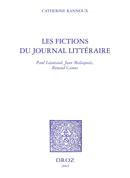 Le journal d’écrivain parle du monde, et c’est bien souvent avec les mots des autres qu’il le fait, signalant en lui la présence explicite d’un déjà dit qu’il circonscrit. Situation paradoxale que celle d’une énonciation qui souligne l’altérité à l’intérieur de sa progression, mais la repousse fictivement hors d’elle par un geste de délimitation, dans le déni du dialogisme constitutif de toute parole. Reconnaissant en lui la présence ponctuelle d’autres discours, le journal offre un tracé de frontières mouvantes et complexes, cartographies imaginaires où s’esquisse l’illusion d’un territoire à soi, propice au déploiement de la fiction de soi. C’est à l’étude des autoportraits proposés par trois journaux du XXe siècle, ceux de Paul Léautaud, de Jean Malaquais et de Renaud Camus, que s’attache cet essai, dans l’observation du jeu singulier de formes langagières qui suggèrent la présence localisée et circonscrite de l’autre, et s’avèrent dès lors masque et indice d’une présence dialogique dynamique souterraine.