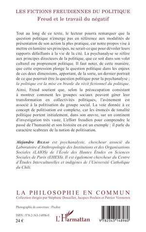 Notre propos vise à mettre en avant les principes de l'action politique, afin de dévoiler leurs rapports défaillants à la vie de la cité. La psychanalyse fait ainsi apparaître la politique comme la mise en branle du récit fictionnel du politique. L'effort freudien pour comprendre le passé de l'humanité et son histoire, pour montrer comment les groupes sociaux peuvent gérer leur transformation en collectivités politiques, interroge la notion même de politisation.