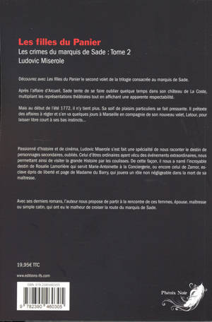 Découvrez avec « Les filles du Panier » le second volet de la trilogie consacrée au marquis de Sade. Après l'affaire d'Arcueil, Sade tente de se faire oublier quelque temps dans son château de La Coste multipliant les représentations théâtrales tout en affichant une apparente respectabilité. Mais au début de l'été 1772, il n'y tient plus. Sa soif de plaisirs particuliers se fait pressante. Il prétexte des affaires à régler et s'en va quelques jours à Marseille en compagnie de son nouveau valet, Latour, pour laisser libre court à ses bas instincts...