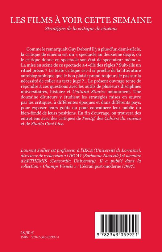 Comme le remarquait Guy Debord, la critique de cinéma est un "spectacle au deuxième degré, où le critique donne en spectacle son état de spectateur même". La mise en scène de ce spectacle a-t-elle des règles ? Suit-elle un rituel précis ? Une douzaine d'auteurs y étudient les stratégies mises en uvre par les critiques, à différentes époques et dans différents pays, pour exposer leurs goûts ou pour convaincre leur public du bien-fondé de leurs positions. On trouvera en fin d'ouvrage, des entretiens avec des critiques de Positif et des Cahiers du cinéma.