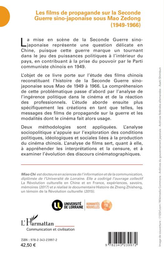 La mise en scène de la Seconde Guerre sino-japonaise représente une question délicate en Chine, puisque cette guerre marque un tournant dans le jeu des puissances politiques à l'intérieur du pays, en contribuant à la prise du pouvoir par le Parti communiste chinois en 1949. L'objet de ce livre porte sur l'étude des films chinois reconstituant l'histoire de la Seconde Guerre sino-japonaise sous Mao de 1949 à 1966. La compréhension de cette problématique passe d'abord par l'analyse de l'ingérence politique dans le cinéma et de la réaction des professionnels. L'étude aborde ensuite plus spécifiquement les créations en tant que telles, les messages des films de propagande sur la guerre et les modalités dont le cinéma fait alors usage.