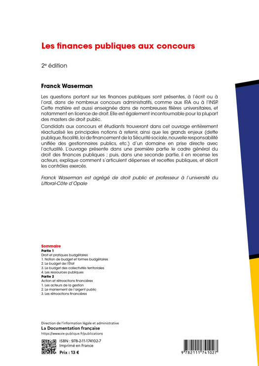 Les questions portant sur les finances publiques sont présentes, à l’écrit ou à l’oral, dans de nombreux concours administratifs, comme aux IRA ou à l’INSP. Cette matière est aussi enseignée dans de nombreuses filières universitaires, et notamment en licence de droit. Elle est également incontournable pour la plupart des masters de droit public. Candidats aux concours et étudiants trouveront dans cet ouvrage entièrement réactualisé les principales notions à retenir, ainsi que les grands enjeux (dette publique, fiscalité, loi de financement de la Sécurité sociale, nouvelle responsabilité unifiée des gestionnaires publics, etc.) d’un domaine en prise directe avec l’actualité. L’ouvrage présente dans une première partie, le cadre général du droit des finances publiques ; puis, dans une seconde partie, il en recense les acteurs, explique comment s’articulent dépenses et recettes publiques, et décrit les contrôles exercés.