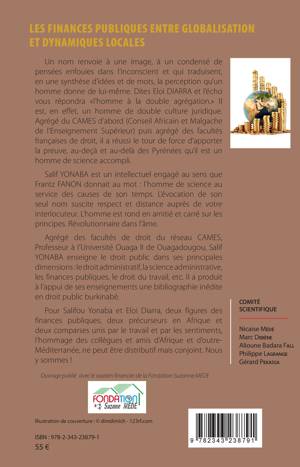 Eloi DIARRA est un homme de double culture juridique. Agrégé du CAMES d'abord (Conseil Africain et Malgache de l'Enseignement Supérieur) puis agrégé des facultés françaises de droit, il a réussi le tour de force d'apporter la preuve, au-deçà et au-delà des Pyrénées qu'il est un homme de science accompli. Salif YONABA est un intellectuel engagé, un homme de science au service des causes de son temps. Pour Salifou Yonaba et Eloi Diarra, deux figures des finances publiques, deux précurseurs en Afrique et deux comparses unis par le travail et par les sentiments, cet hommage des collègues et amis d'Afrique et d'outre Méditerranée.