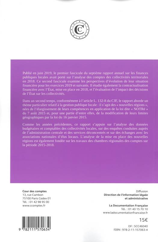 Publié en juin 2019, le premier fascicule du septième rapport annuel sur les finances publiques locales avait porté sur l'analyse des comptes des collectivités territoriales en 2018. Ce second fascicule examine les perspectives d'évolution de leur situation financière pour les exercices 2019 et suivants. Il étudie également la contractualisation financière avec l'État, mise en place en 2018, et l'évaluation de l'impact des décisions de l'État sur les collectivités.
