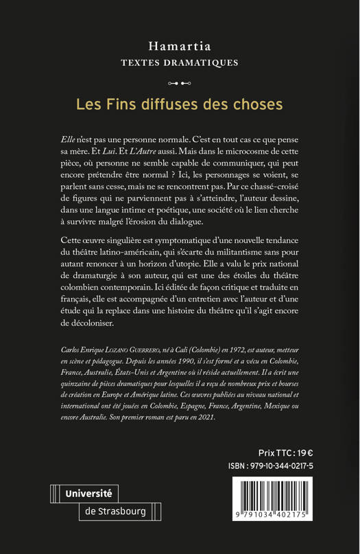 Cette œuvre singulière est symptomatique d’une nouvelle tendance du théâtre latino-américain, qui s’écarte du militantisme sans pour autant renoncer à un horizon d’utopie. Elle a valu le prix national de dramaturgie à son auteur, qui est une des étoiles du théâtre colombien contemporain. Ici éditée de façon critique et traduite en français, elle est accompagnée d’un entretien avec l’auteur et d’une étude qui la replace dans une histoire du théâtre qu’il s’agit encore de décoloniser.