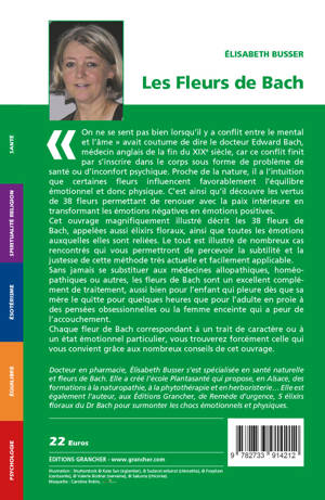 « On ne se sent pas bien lorsqu'il y a conflit entre le mental et l'âme » avait coutume de dire le docteur Edward Bach, médecin anglais de la fin du XIXe siècle, car ce conflit finit par s'inscrire dans le corps sous forme de problème de santé ou d'inconfort psychique. Proche de la nature, il a l'intuition que certaines fleurs influencent favorablement l'équilibre émotionnel et donc physique. C'est ainsi qu'il découvre les vertus de 38 fleurs permettant de renouer avec la paix intérieure en transformant les émotions négatives en émotions positives. Cet ouvrage magnifiquement illustré décrit les 38 fleurs de Bach, appelées aussi élixirs floraux, ainsi que toutes les émotions auxquelles elles sont reliées. Le tout est illustré de nombreux cas rencontrés qui vous permettront de percevoir la subtilité et la justesse de cette méthode très actuelle et facilement applicable. Sans jamais se substituer aux médecines allopathiques, homéopathiques ou autres, les fleurs de Bach sont un excellent complément de traitement, aussi bien pour l'enfant qui pleure dès que sa mère le quitte pour quelques heures que pour l'adulte en proie à des pensées obsessionnelles ou la femme enceinte qui a peur de l'accouchement. Chaque fleur de Bach correspondant à un trait de caractère ou à un état émotionnel particulier, vous trouverez forcément celle qui vous convient grâce aux nombreux conseils de cet ouvrage. Nouvelle édition, remplace EAN 9782733911105.