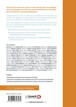 Cet ouvrage décrit les fonctions exécutives et s'attachent pour chacune aux troubles associés ainsi qu'à l'étiologie des troubles, ainsi qu'à la remédiation psychologique et neuropsychologique chez l'enfant et l'adulte.
