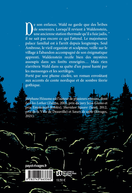 De son enfance, Wald ne garde que des bribes de souvenirs. Lorsqu'il revient à Waldenstein, une ancienne station thermale qu'il a fuie jadis, il ne sait pas encore ce qui l'attend. Le majestueux palace familial est à l'arrêt depuis longtemps. Seul Ambrose, le vieil organiste et sculpteur, veille sur le village à l'abandon, accompagné de son énigmatique apprenti. Waldenstein recèle bien des mystères assoupis dans ses forêts enneigées... Mais rien n'arrêtera Wald dans sa quête d'un passé hanté par les mensonges et les sortilèges. Porté par une plume ciselée, un roman envoûtant aux accents de conte nordique et de sombre féerie gothique.