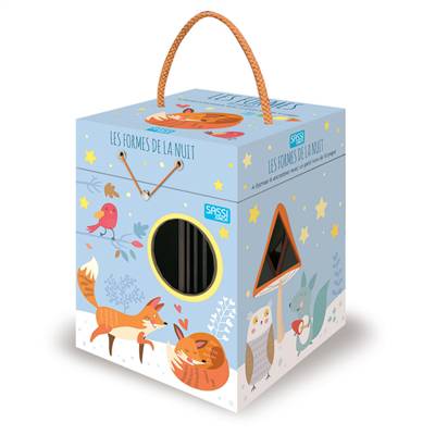 A l'heure où la nuit tombe, les animaux se préparent à se coucher. Avec des formes à encastrer dans des cubes pour compléter le décor.