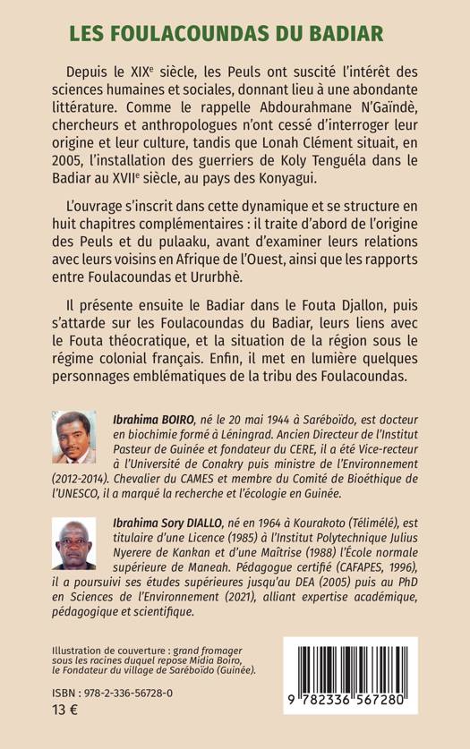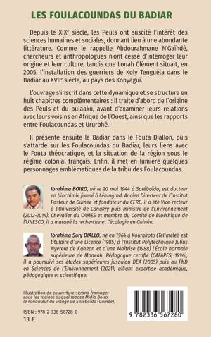 Depuis le XIXe siècle, les Peuls ont suscité l'intérêt des sciences humaines et sociales, donnant lieu à une abondante littérature. Comme le rappelle Abdourahmane N'Gaïndè, chercheurs et anthropologues n'ont cessé d'interroger leur origine et leur culture, tandis que Lonah Clément situait, en 2005, l'installation des guerriers de Koly Tenguéla dans le Badiar au XVIIe siècle, au pays des Konyagui. L'ouvrage s'inscrit dans cette dynamique et se structure en huit chapitres complémentaires: il traite d'abord de l'origine des Peuls et du pulaaku, avant d'examiner leurs relations avec leurs voisins en Afrique de l'Ouest, ainsi que les rapports entre Foulacoundas et Ururbhè. Il présente ensuite le Badiar dans le Fouta Djallon, puis s'attarde sur les Foulacoundas du Badiar, leurs liens avec le Fouta théocratique, et la situation de la région sous le régime colonial français. Enfin, il met en lumière quelques personnages emblématiques de la tribu des Foulacoundas.