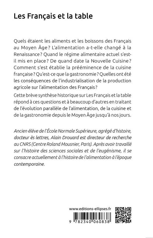 Cette brève synthèse historique sur Les Français et la table répond à ces questions et à beaucoup d'autres en traitant de l'évolution parallèle de l'alimentation, de la cuisine et de la gastronomie depuis le Moyen Âge jusqu'à nos jours.
