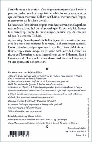 Il faut sortir de sa zone confort pour prendre conscience que la théorie de l’évolution est aujourd’hui non plus une hypothèse mais un fait scientifique qui a fait évoluer la démarche spirituelle du Franc-Maçon, à l’image de Teilhard de Chardin qui a secoué la doctrine chrétienne. En cela le Franc-Maçon et Teilhard, par des liens spirituels qui les unissent, sont des aventuriers de l’esprit et nous conduisent vers une spiritualité de l’incarnation.