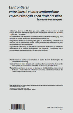 Ces contributions abordent les aspects fondamentaux des droits français et brésilien sous le prisme du rapport entre liberté et interventionnisme de l'Etat. D'importantes branches des droits public, privé et international y sont traitées et ces interventions sont enrichies par des commentaires de professeurs.
