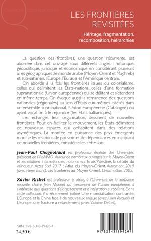 La question des frontières, une question récurrente, est abordée dans cet ouvrage sous différents angles : historique, géopolitique, juridique et économique en considérant plusieurs aires géographiques : le monde arabe et sub-saharien, l'Europe, l'Eurasie et l'Amérique centrale. L'ouvrage traite à la fois les frontières issues du colonialisme, celles qui délimitent les États-nations, celles d'une formation supranationale (Union européenne) qui se délitent et s'étendent en même temps. La montée en puissance des pays émergents modifie les relations de pouvoir et de dépendances en instituant de nouvelles frontières, immatérielles cette fois.
