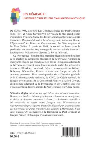 De 1936 à 1958, la société Les Gémeaux fondée par Paul Grimault (1905-1994) et André Sarrut (1910-1997) a été le plus grand studio d’animation d’Europe. À partir de 1948, la société se lance dans la production du premier long métrage de dessins animés français : La Bergère et le Ramoneur (devenu Le Roi et l’Oiseau). Au fi l d’une incroyable épopée qui prend place en pleine Occupation allemande de la France se croisent, les scénaristes Aurenche, Blondeau, Leenhardt, Prévert, les compositeurs Wiéner, Delanno, Désormière, Kosma et toute une équipe de près de quarante personnes. Il est aussi question de la Direction générale de la Cinématographie nationale, du ministère allemand de la Propagande et de Goebbels qui tous s’intéressent aux dessins animés de Paul Grimault et d’André Sarrut.
