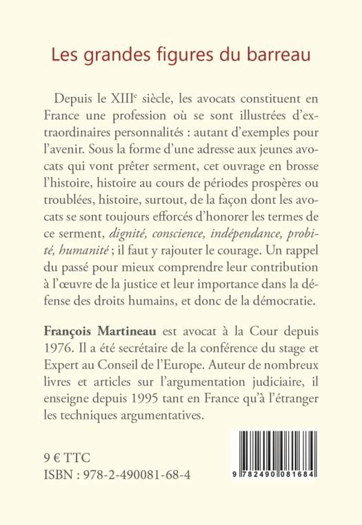 Depuis le 13e siècle, les avocats constituent en France uneprofession où se sont illustrées, d'extraordinaires personnalités : autantd'exemples pour l'avenir. Sous la forme d'une adresse aux jeunesavocats qui vont prêter serment, cet ouvrage en brosse l'histoire, histoire aucours de périodes prospères ou troublées, histoire, surtout, de la façon dontles avocats se sont toujours efforcés d'honorer les termes de ce serment,dignité, conscience indépendance, probité, humanité ; Il faut y rajouter lecourage. Un rappel du passé pour mieux comprendre leur contributionà l'oeuvre de justice et leur importance dans la défense des droits humains, etdonc de la démocratie.