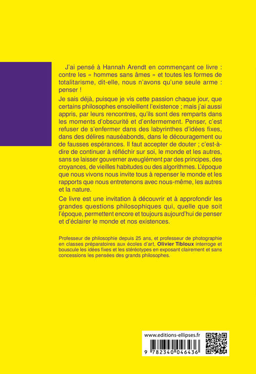 Professeur de philosophie depuis 25 ans, et professeur de photographie en classes préparatoires aux écoles d’art, Olivier Tibloux interroge et bouscule les idées fixes et les stéréotypes en exposant clairement et sans concessions les pensées des grands philosophes. Il est aussi l’auteur d’Une petite histoire des grands philosophes et  des Grandes questions philosophiques en clair, aux éditions Ellipses.