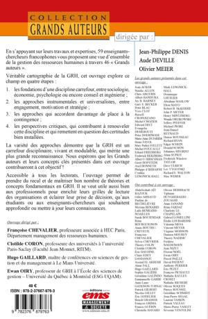 En s’appuyant sur leurs travaux et expertises, 59 enseignants-chercheurs francophones vous proposent une vue d’ensemble de la gestion des ressources humaines à travers 46 « Grands auteurs ».