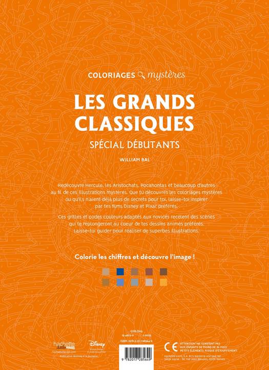1 - CHOISIS TES OUTILS - crayons de couleur, marqueurs à base d'eau ou marqueurs acryliques 2 - COLORIE LES NUMÉROS selon le code couleur pour révéler une magnifique illustration Disney ! 3 - PROFITE d'un moment de détente avec les livres de coloriage Hachette Heroes ! 100 PAGES DE COLORIAGES MYSTÈRES - pour des heures de divertissement GRAND FORMAT - le format 300 mm x 215 mm pour donner vie aux personnages PAPIER PREMIUM - pour éviter tout débordement UN CADEAU PARFAIT - pour les fans de Disney de tous âges