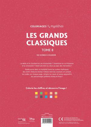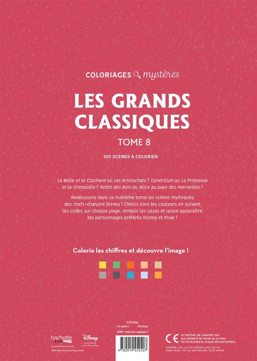 Redécouvre dans ce huitième tome les scènes mythiques des chefs-d’œuvre Disney ! Grâce aux codes couleurs, applique chaque nuance dans la zone correspondante et révèle tes scènes préférées des films d’animation Disney !