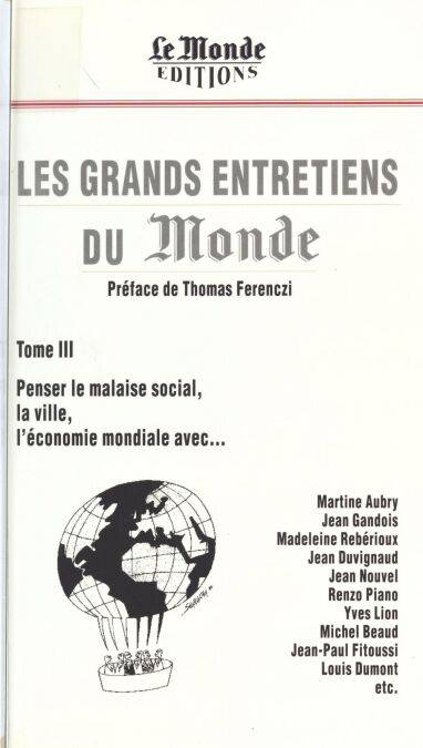 Ce troisième volume des Grands entretiens, constitué d’interviews données au quotidien Le Monde par des chercheurs, des experts et des praticiens, poursuit le travail entamé depuis 1991, pour redonner du sens au présent, après la défaite des certitudes. Les trois thèmes abordés dans ce livre, la fracture sociale, la ville, l’économie mondiale sont en cohérence, d’une part parce qu’ils reflètent ensemble une période de cassure et la recherche de nouveaux modèles de régulations sociale et économique, d’autre part parce que leurs manifestations sont interdépendantes. À la formule abstraite de la mondialisation s’adjoint le symptôme concret du malaise des banlieues, qui s’exprime dans le cadre de l’organisation politique de la ville. Architectes, économistes, sociologues, historiens, acteurs professionnels ou dirigeants politiques s’interrogent sur les contours d’un futur flou où la question centrale demeure celle de l’avenir du capitalisme ou selon les expressions des uns et des autres du « post-capitalisme », du « turbo-capitalisme », de la « recomposition » de la « civilisation industrielle » ou encore du « tournant écologique ».