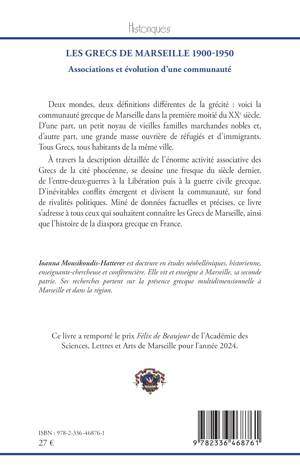 Deux mondes, deux définitions différentes de la grécité voici la communauté grecque de Marseille dans la première moitié du XXe siècle. D'une part, un petit noyau de vieilles familles marchandes nobles et, d'autre part, une grande masse ouvrière de réfugiés et d'immigrants. Tous Grecs, tous habitants de la même ville. À travers la description détaillée de l'énorme activité associative des Grecs de la cité phocéenne, se dessine une fresque du siècle dernier, de l'entre-deux-guerres à la Libération puis à la guerre civile grecque. D'inévitables conflits émergent et divisent la communauté, sur fond de rivalités politiques. Mine de données factuelles et précises, ce livre s'adresse à tous ceux qui souhaitent connaître les Grecs de Marseille, ainsi que l'histoire de la diaspora grecque en France.