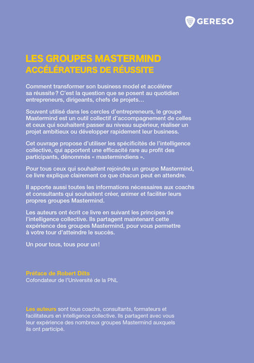 Il apporte aussi toutes les informations nécessaires aux coachs et consultants qui souhaitent créer, animer et faciliter leurs propres groupes Mastermind.