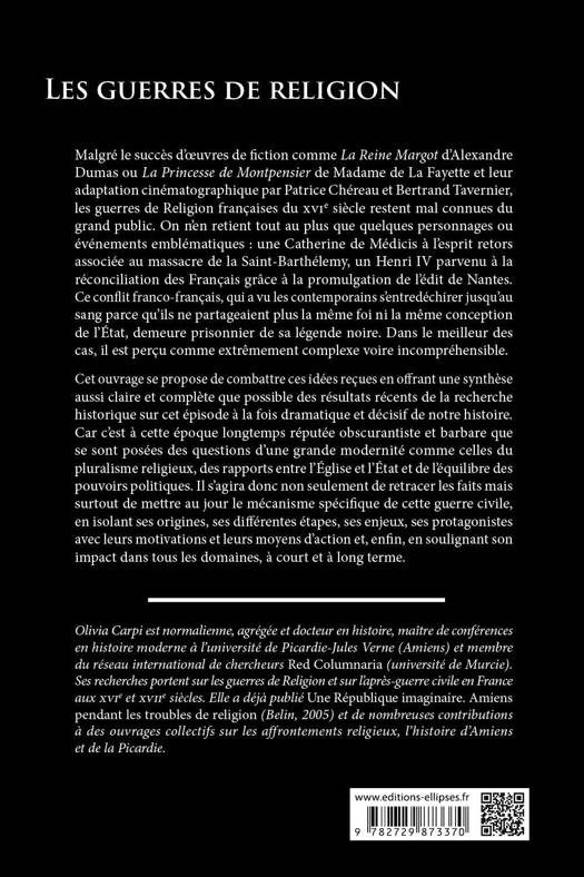 Cet ouvrage se propose de combattre ces idées reçues en offrant une synthèse aussi claire et complète que possible des résultats récents de la recherche historique sur cet épisode à la fois dramatique et décisif de notre histoire. Car c’est à cette époque longtemps réputée obscurantiste et barbare que se sont posées des questions d’une grande modernité comme celles du pluralisme religieux, des rapports entre l’Église et l’État et de l’équilibre des pouvoirs politiques. Il s’agira donc non seulement de retracer les faits mais surtout de mettre au jour le mécanisme spécifique de cette guerre civile, en isolant ses origines, ses différentes étapes, ses enjeux, ses protagonistes avec leurs motivations et leurs moyens d’action et, enfin, en soulignant son impact dans tous les domaines, à court et à long terme.