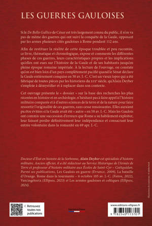 Afin de restituer la réalité de cette époque troublée et peu connue, ce livre, thématique et chronologique, expose et commente les différentes phases de ces guerres, leurs caractéristiques propres et les implications qu’elles ont eues sur l’histoire de la Gaule et de ses habitants jusqu’en pleine époque romaine impériale. À la lecture de l’ouvrage, on constate qu’on est bien loin d’un pays complètement pacifié quand le Sénat déclare la Gaule entièrement conquise en 50 avant J.-C. C’est un vieux topos qui a été fabriqué de toutes pièces par les historiens du XIXe siècle, qu’Alain Deyber s’emploie à démystifier et à replacer dans son contexte.