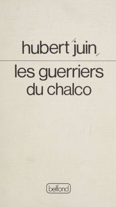 Non pas poèmes arbitrairement rassemblés, mais roman-poème, livre organisé, Les Guerriers du Chalco explore et dit deux mondes étroitement unis : celui des fantasmes et celui des événements historiques. Le poème d'Hubert Juin appartient à la veine baroque, et, dans cette mesure, loin de renoncer au discours rhétorique, au contraire l'accepte et en use. Le texte prend appui sur les objets de la nature : arbres, eaux, feuillage. Il devient ainsi, à sa façon, un paysage que le lecteur peut, à loisir, habiter. Ce lieu tressé de mots, est hanté par la présence du corps féminin, dont il ne cesse de faire louange. Refusant la solitude, la parole ici inscrite convoque les autres, et spécialement Yánnis Rítsos, Pablo Neruda et José Lezama Lima. Ce dialogue fait sa place aux soubresauts de notre siècle. Il n'est pas de petites choses, qui seraient négligeables ; ni de grandes, qui seraient nécessaires. Tout doit prendre rang dans l'entreprise poétique. Comme l'a écrit Victor Hugo : L'ensemble peint.