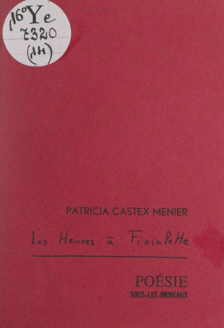 Patricia Castex-Menier vit à Paris. A publié, encore adolescente, un petit recueil, "Flandre", qui débuta la collection “Herbes folles” au Dé bleu. Plusieurs recueils à son actif dont, très récemment, en Inde : "La roue à aubes", édition originale en français, de 140 pages, sur papier spécial “Inde” et relié sous couverture de soie indienne, au prix de 49 frs aux éditions Writers workshop à Calcutta (Inde), ou chez l’auteur : 37, rue du Simplon - 75018 Paris.
