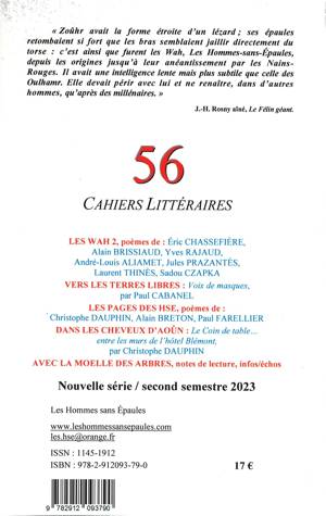 Les 70 ans des Hommes sans Épaules sont l’occasion pour Christophe Dauphin de revenir dans son éditorial, « Salut aux riverains de 2023 ! », sur la longue histoire, l’engagement et les orientations de la revue de 1953 à 2023 : « Pour les Hommes sans Épaules, le poème n’est jamais production artificielle, pirouette linguistique ou verbalisme asséchant. Se méfiant du cynisme comme du décoratif culturel, le poème colle au plus près de la réalité, du vécu de l’homme ordinaire, pour résumer le statut que les poètes du groupe ont toujours réclamé pour eux-mêmes. »