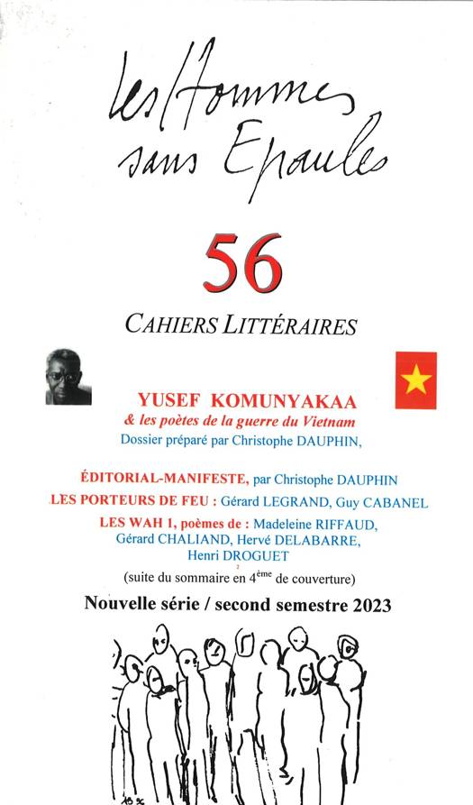 Le dossier central du numéro est consacré à « Yusef Komunyakaa & Les poètes vietnamiens de la guerre du Vietnam ». Poète Afro-étatsunien, inconnu et non traduit en France, alors que ce poète est un grand, Komunyakaa a été confronté à l'histoire des USA, racisme, combats pour les droits civiques, ségrégation. Puis, Komunyakka est envoyé dans le Vietnam en guerre. Il en a rapporte probablement les meilleurs poèmes du genre, que nous publions intégralement. Mais, la guerre du Vietnam a été précédée par une première, la bien oubliée guerre d’Indochine, que nous évoquons.