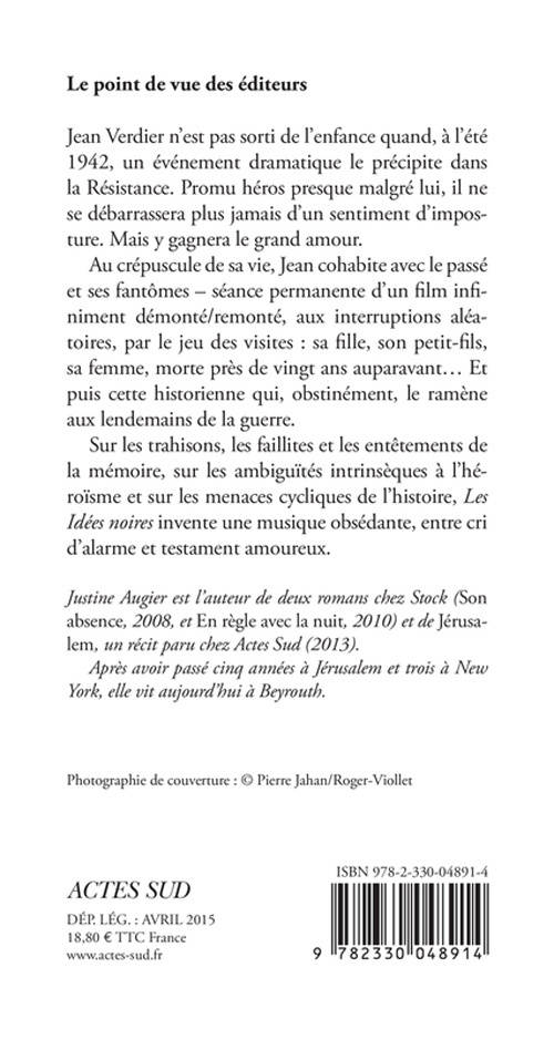 Sur les trahisons, les faillites et les entêtements de la mémoire, sur les ambiguïtés intrinsèques à l'héroïsme et sur les menaces cycliques de l'histoire, «Les Idées noires» invente une musique obsédante, entre cri d'alarme et testament amoureux.