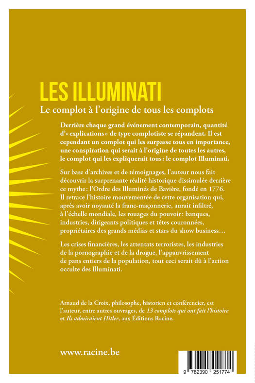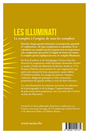 Sur base d'archives et de témoignages, l'auteur nous fait découvrir la surprenante réalité historique dissimulée derrière ce mythe : l'Ordre des Illuminés de Bavière, fondé en 1776. Il retrace l'histoire mouvementée de cette organisation qui, après avoir noyauté la franc-maçonnerie, aurait infiltré, à l'échelle mondiale, les rouages du pouvoir : banques, industries, dirigeants politiques et têtes couronnées, propriétaires des grands médias et stars du show business...