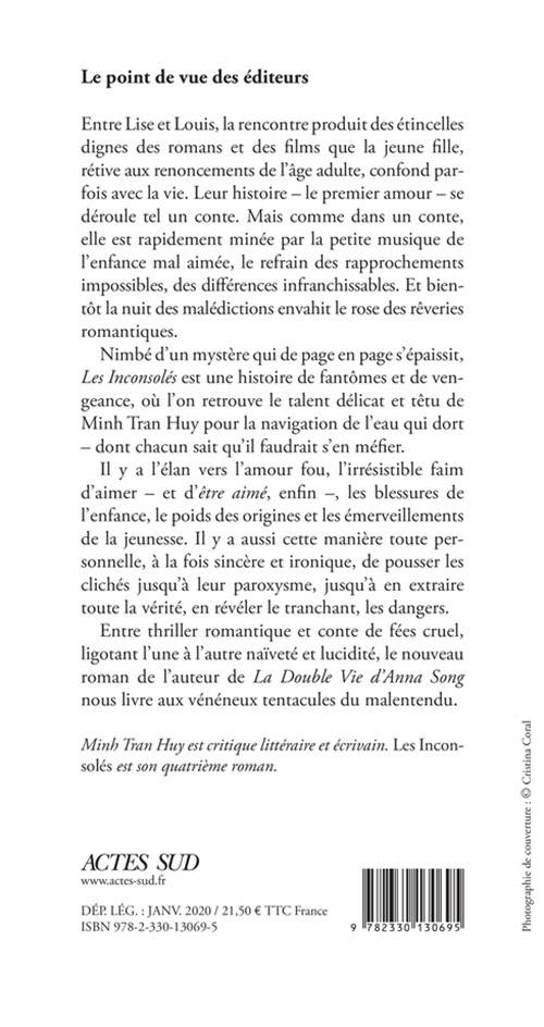 Entre Lise et Louis, la rencontre produit des étincelles dignes des romans et des films que la jeune fille, rétive aux renoncements de l'âge adulte, confond parfois avec la vie. Leur histoire - le premier amour - se déroule tel un conte. Mais comme dans un conte, elle est rapidement minée par la petite musique de l'enfance mal aimée, le refrain des rapprochements impossibles, des différences infranchissables. Et bientôt la nuit des malédictions envahit le rose des rêveries romantiques. Nimbé d'un mystère qui de page en page s'épaissit, «Les Inconsolés» est une histoire de fantômes et de vengeance, où l'on retrouve le talent délicat et têtu de Minh Tran Huy pour la navigation de l'eau qui dort - dont chacun sait qu'il faudrait s'en méfier. Il y a l'élan vers l'amour fou, l'irrésistible faim d'aimer - et d'être aimé, enfin -, les blessures de l'enfance, le poids des origines et les émerveillements de la jeunesse. Il y a aussi cette manière toute personnelle, à la fois sincère et ironique, de pousser les clichés jusqu'à leur paroxysme, jusqu'à en extraire toute la vérité, en révéler le tranchant, les dangers. Entre thriller romantique et conte de fées cruel, ligotant l'une à l'autre naïveté et lucidité, le nouveau roman de l'auteur de «La Double Vie d'Anna Song» nous livre aux vénéneux tentacules du malentendu.