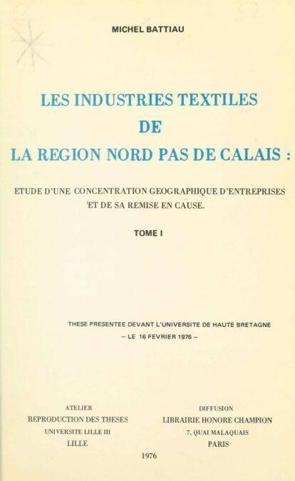 Les industries textiles de la région Nord-Pas-de-Calais : étude d'une concentration géographique d'entreprises et de sa remise en cause (1) E-BOOK